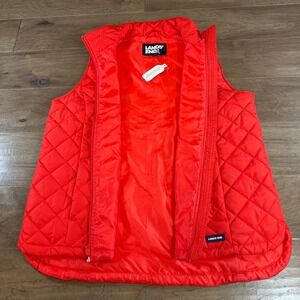 Keywords: Lands End, quilted vest, puffer vest, women's vest, red vest, lightweight, full zip, stand collar, outdoor, casual wear, layering piece, fall fashion, spring fashion, athleisure