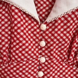 Vintage red gingham dress with a button-down front and large collar. The fit on this is sooo flattering. I think it’s handmade but really hasn’t been worn.