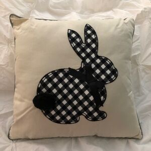 Gingham bunny pillow bow pompom black white cream Grandin Road