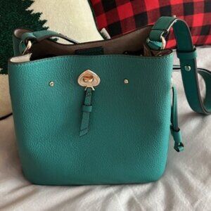 Kate Spade, Spring Green, Shoulder bag with adjustable strap, multiple compartments, lightweight. Magnetic closure. Pebbled leather.