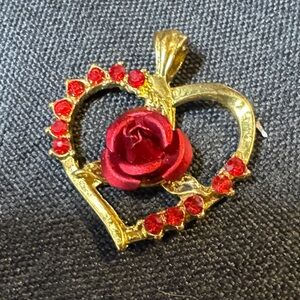 Gold Heart Pendant with Red Rose Accents