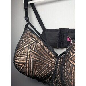 Adore Me 44DDD Trezza Contour Bra Underwire Black Geometric Lace Strapy Intimate