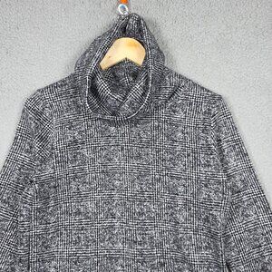 J Crew Sweater Womens Small Glen Plaid Funnel Neck Cowl Regular Fit Cozy Fleece