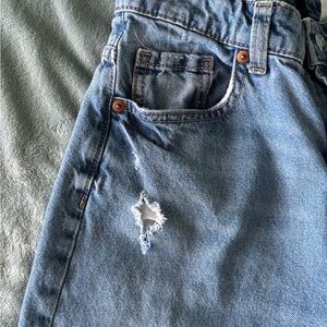 Trendy wide leg jeans with distressed details. Perfect for a casual look. Jeans have been worn multiple times, but are otherwise in good condition. Comes from a smoke-free and pet-free home. :)