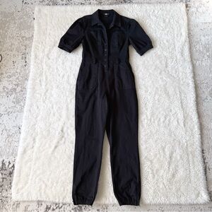 PAIGE Woman Black Stretch Denim Utility Jumpsuit US4 Preppy Boho Contemporary