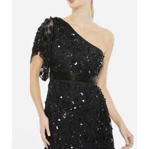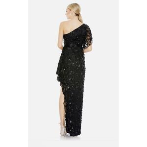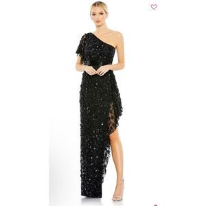 Mac Duggal NWT size 4 black floral sequin side slit formal gown style 93687
