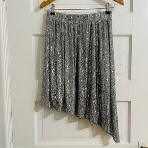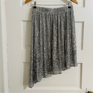 Free People Last Dance Silver Sequin Asymmetrical NYE Eras Skirt