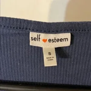 Self Esteem Blue Ribbed Long Sleeve Lace Trim Crop Top Size Small Y2K