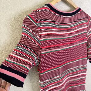 Anthropologie Aldo Martins Alice Stripe Knit Dress Womens Medium Pink Red Ruffle