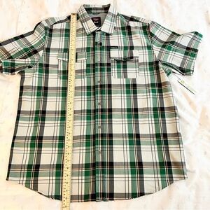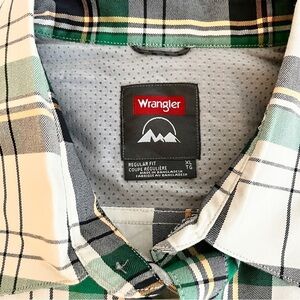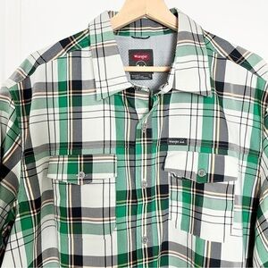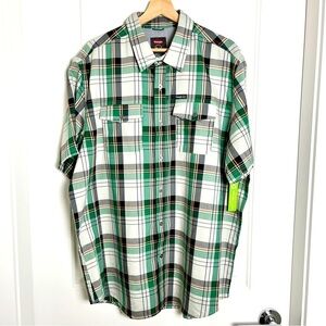 NWT Wrangler Short Sleeve Plaid Outdoor Utility Shirt-Green Black-XL