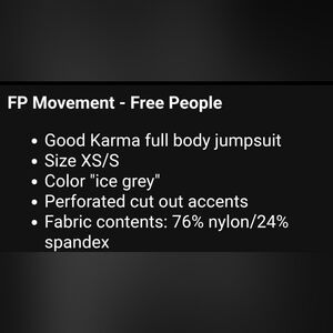 NWT! Free People Yoga/Athleisure/Fitness Good Karma Long Sleeve Women's Jumpsuit Size XS/S In Vintage Ice Grey. Pit To Pit-12.5 Waist-11 Inseam-22 Length-42. Make Offer! _____________________________________________________________________________________________<<<<<<<<< 💟🤍🩶 If you're new to Poshmark, use Code DIASGEMS when you create an account and receive $10.00 upon joining.🩶🤍💟