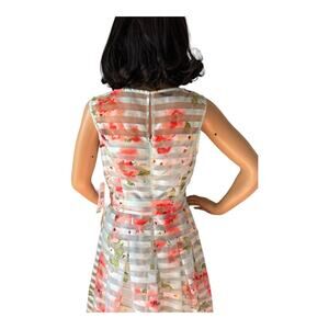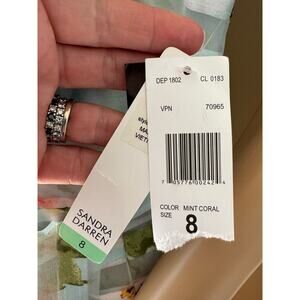 NWT Floral Striped Sheer sleeveless mint coral Sandra Darren dress size 8