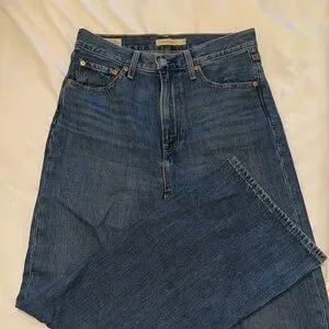 Levi's Ribcage Wide Leg jeans.Dark blue hue. Worn once. Standard length (32) No flaws, excellent condition. 100% Cotton. Color is “I’m Never Wrong”