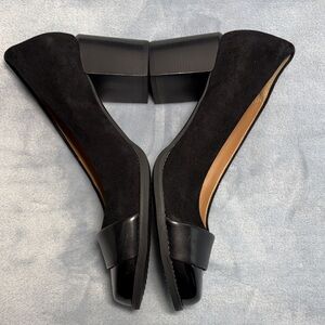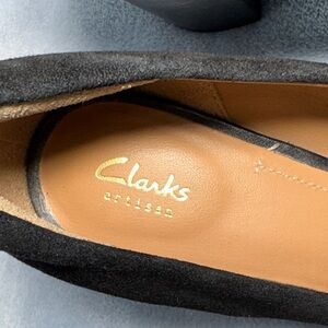 NWOT! Excellent condition! Step out in style with Clarks women's black leather pumps. Perfect for any occasion, these shoes offer classic elegance and a cushioned footbed. 2.5" block heel. Ask me any questions about this item.