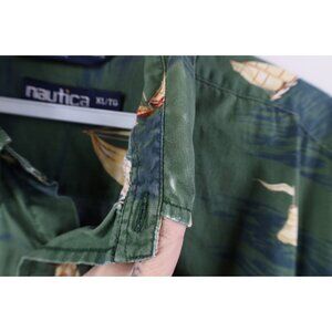 Vtg 90s Nautica Mens XL Faded Sailing Sailboat All Over Print Button Down Shirt