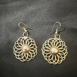 These elegant gold brass floral earrings add a touch of sophistication to any outfit. Perfect for any occasion.