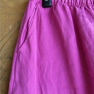 This skirt features a pull-on closure, elastic waist, and pockets for added convenience. Made from a linen and lyocell blend, it is lightweight and comfortable, ideal for a carefree or festival-inspired look.