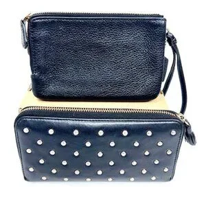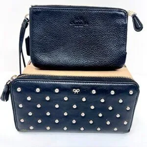 2 Vintage Wallets black leather full zip COACH & Ana Hindmarch with Studs (70)