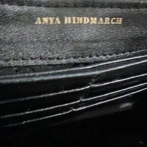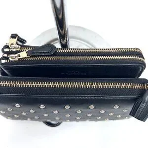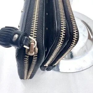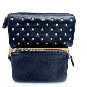 1) Ana Hindmarch, large wallet , 4"x8:, full zip with struds all over black leahter, Excellent condtion inside out, no scratch or mark