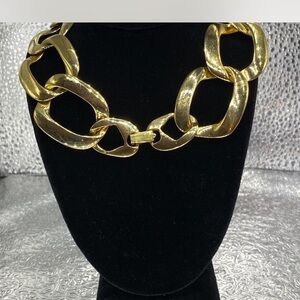 Gold ChunKeee Chain Link Necklace and Hoop Earrings Set