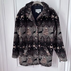 Vintage 90’s LL Bean Nordic Reindeer Button Front Fleece Jacket Size Small