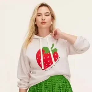 knit hoodie, knit sweatshirt, graphic hoodie, graphic sweatshirt, graphic print, graphic design, fruit, strawberry, fall, spring, summer, winter, cold weather, transitional wear, outdoors, cozy, comfy, soft, oversized sweater, oversized hoodie, loose fit sweatshirt, loose fit hoodie, outerwear, over wear, kawaii, feminine, girlhoodcore, tiktok favorite, TikTok famous, influencer favorite, influencer famous, Kate spade new york, NYC, grandma vibes