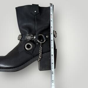 Harley Davidson Women Black Leather Biker Ankle Boots Chain Buckle Sturgis sz 7