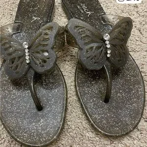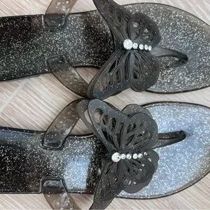 COACH Elegant plastic Black Butterfly Sandals with rhinestones size 7