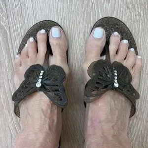 Step out in style with these elegant Coach brand black sandals featuring a charming butterfly design. Perfect for any occasion.