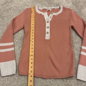 Faherty womens ribbed knit mikki Henley Sweater cotton cashmere size medium pink