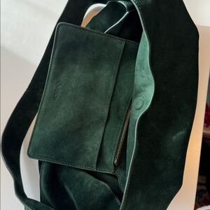 Quince Italian Suede Slouchy Shoulder Bag dark green leather new no tags