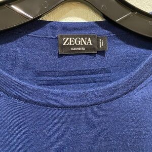 Zegna Cashseta cashmere and silk blend crewneck sweater in blue Made in Italy worn once in a new condition smoke-free home.