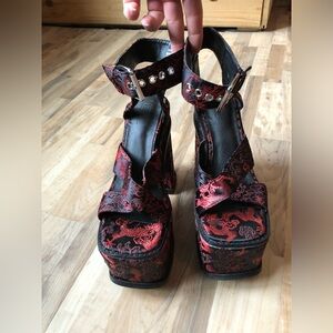 Poster Grl Dolls Kill women’s size 8 platform heels. Gorgeous Dragon design. Like new, only worn a few times.