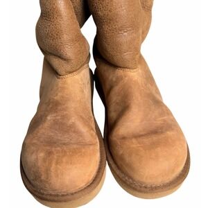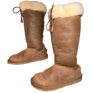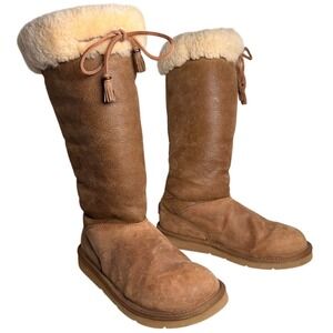 UGG Sussex Tall Boots Brown Leather Shearling Lined Women's Size 8 Après Ski