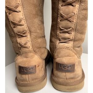 UGG Sussex Tall Boots Brown Leather Shearling Lined Women's Size 8 Après Ski Outdoors Winter Snow Gorpcore
