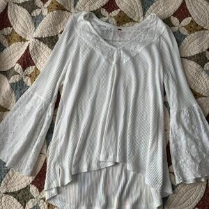 Free People Parisian Nights Blouse Top White Size M NWOT boho bell sleeves lace