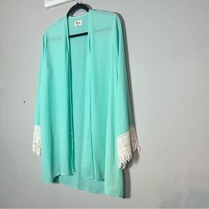 Show Me Your Mumu Mint Green Cardigan Lace Trim Kimono Beach Coverup Size Small