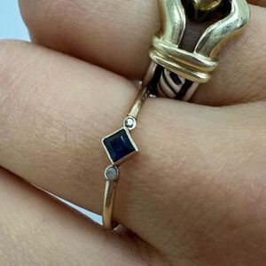 Vintage 8K Solid Gold Blue Saphire & Diamond Dainty Stacking Ring Size 6.75