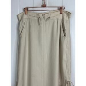 Da Nang Surplus 100% Silk Midi Length Cargo Drawsting Skirt in Cream Size Large