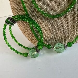 Hand Crafted Necklace Wrap Bracelet Drop Earrings Set Lime Green Double Strands