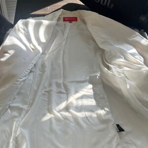Elegant ivory jacket by Anne Klein. Features a tailored collar and button accents.