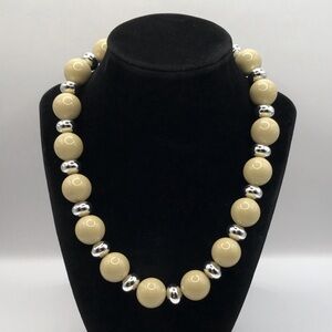 Vintage Tan & Silver-Tone Acrylic Bead Necklace