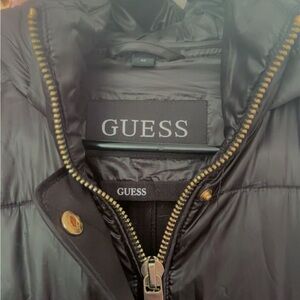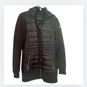 Chic Guess jacket in black. Gold zipper and button accents. Perfect for cool weather.