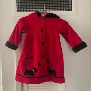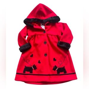 Pete’s Partner Girls Scottish Terrier Red Coat With Faux Black Fur Trim Size 4