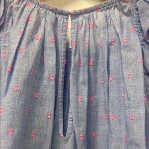 Lilly Pulitzer Top, Ruffle, Sleeveless, Blue w/Pink, Flowy, Feminine