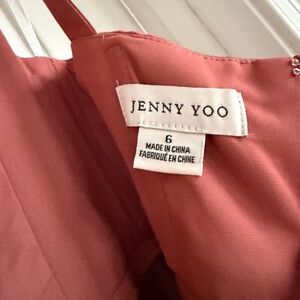 Jenny, Yoo bridesmaids dress in style “Lowe”. English Rose Luxe Satin. Size 6 and hemmed for a 5foot 3inch with one inch heels on. I am a 41 hip 27 waist 34 bust and this fit me like it does on the model. There are a few pulls in fabric, but they are not noticeable unless you really look for them. They are in the pictures please reference pictures. The dress was worn once for a wedding. Currently selling on their website for $315+ tax.