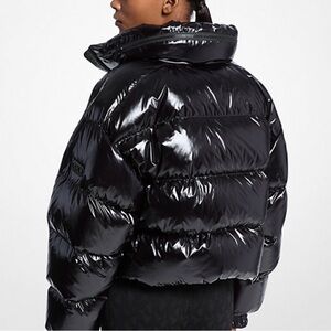 Michael Kors Shiny Black Puffer Jacket Nylon Ciré Puffer Jacket size small new