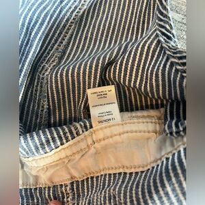 vintage blue and white railroad stripe shortalls.
