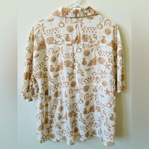 Stylish beige and white patterned shirt and shorts set. Perfect for casual outings.
