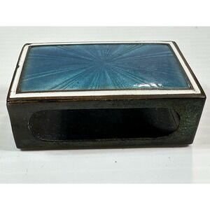 Vintage German Art Deco Blue White Enamel Match Box Holder 1930's Star Burst